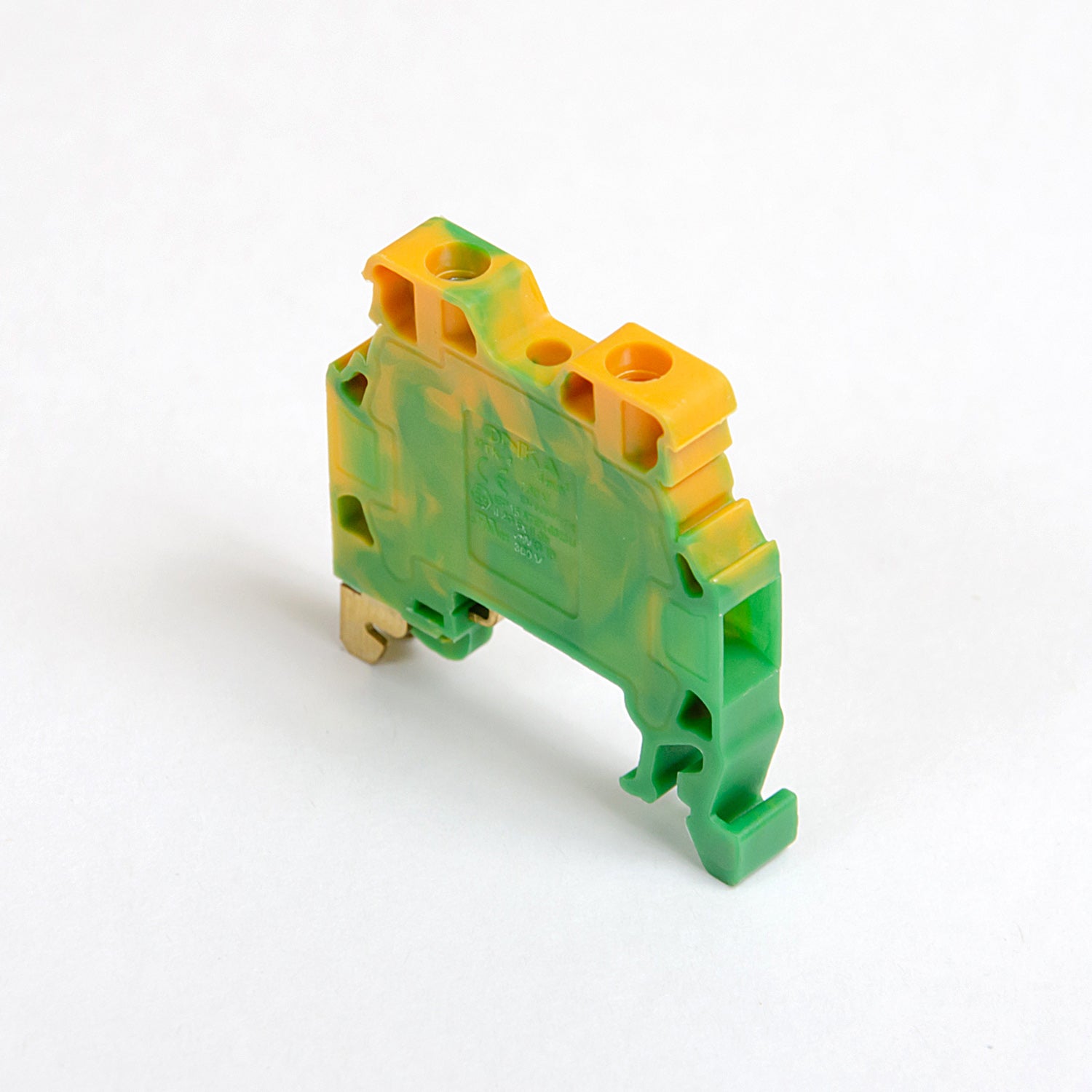 PE rail connector with thread / DIN rail terminal 2-core green-yellow, ONKA, made in Turkey