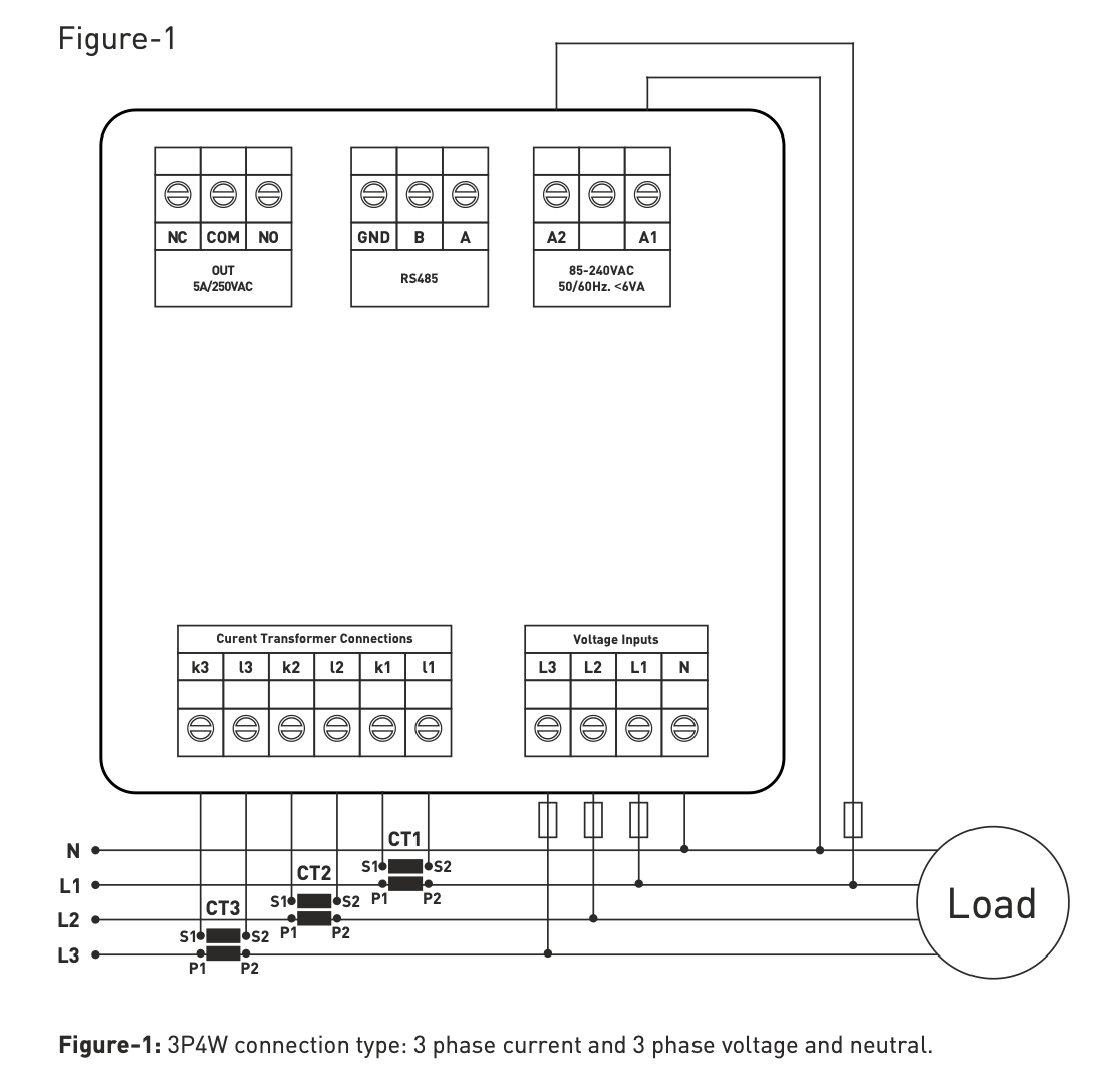 Normalerweise wird dieses Multimeter mit Strommesswandlern verwendet - 60/5 75/5 100/5 150/5 200/5 250/5 300/5 400/5 500/5 600/5 800/5 1000/5 1500/5 oder ähnlich. Sie können solche Transformatoren in unserem e-shop kaufen,