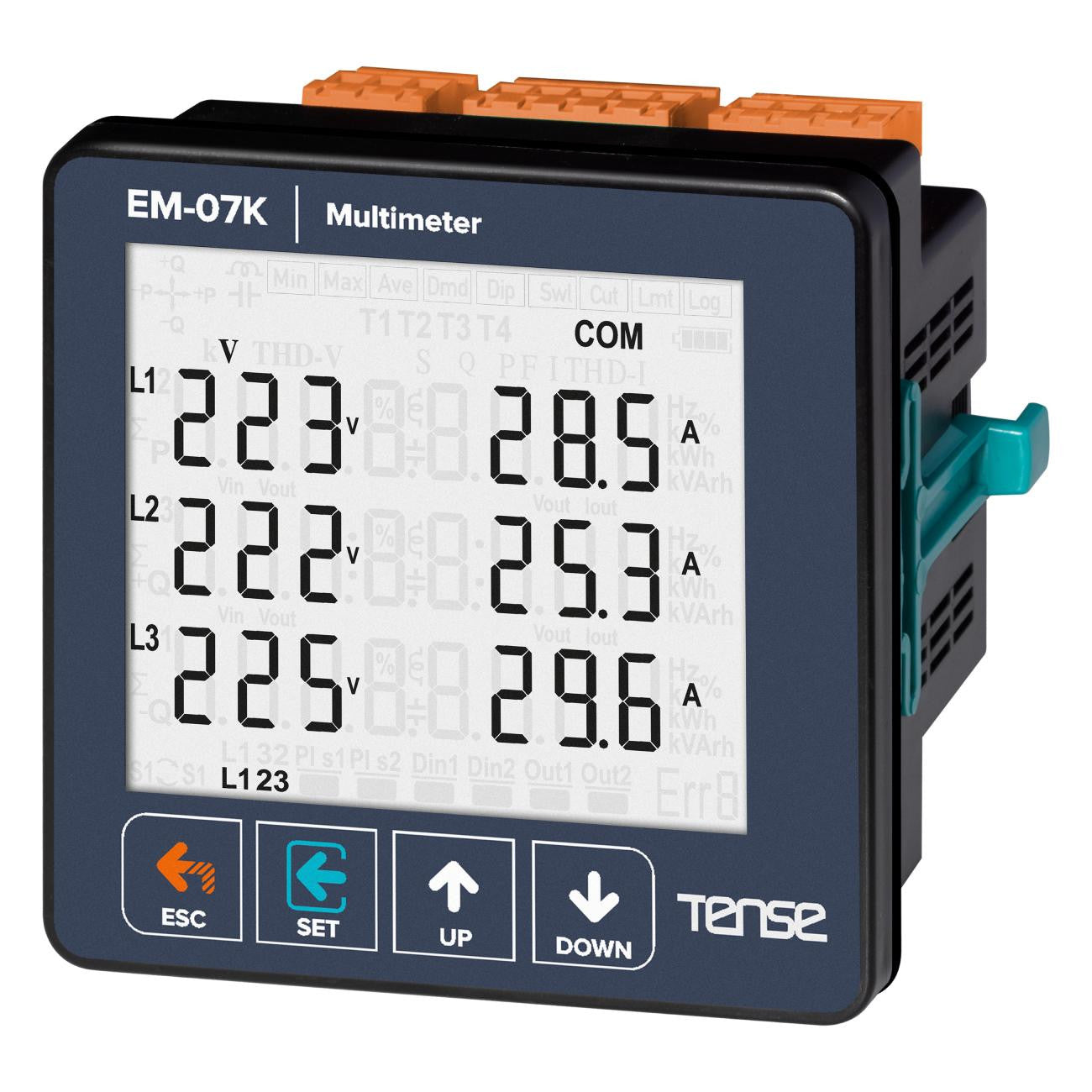 Dreiphasen-Multimeter - 3-Phasen-Multifunktions-Digital-Panelmeter, Strom, Spannung, Frequenz und Gesamtleistungsanzeige, Energie kW*h und ModBus RTU Hersteller TENSE (Türkei), Panel Meter.