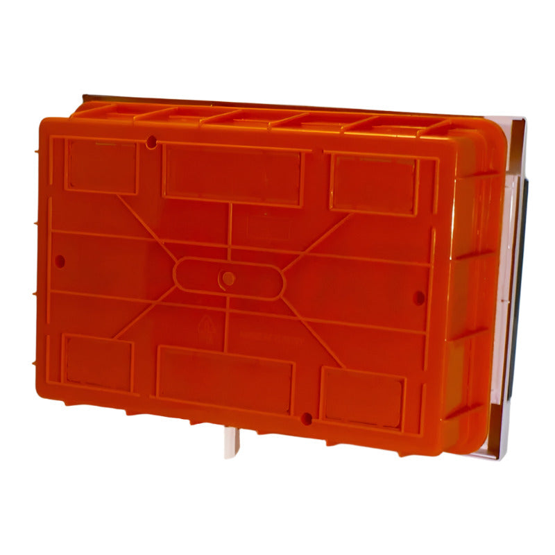 • Das Gehäuse ist mit einer Prägung versehen, die das Einführen von Kabeln oder Installationsrohren erleichtert.