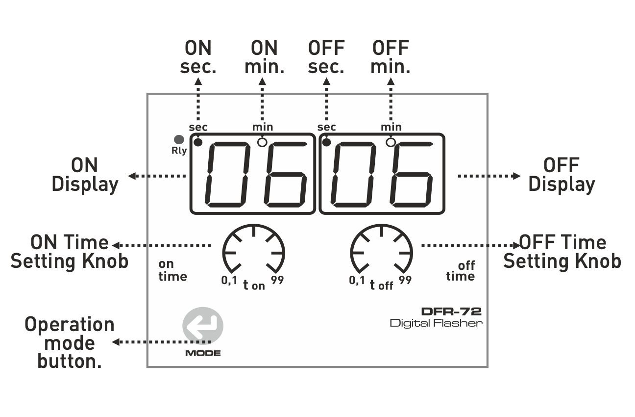 Asymmetrischer Taktgeber / Zeitschaltrelais 2×2 LED-Anzeige für Schalttafel-/Türmontage 230VAC - Blinker bei Impulsbeginn , Blinker bei Pausenbeginn Taktgeber - symmetrischer / asymmetrischer Takt