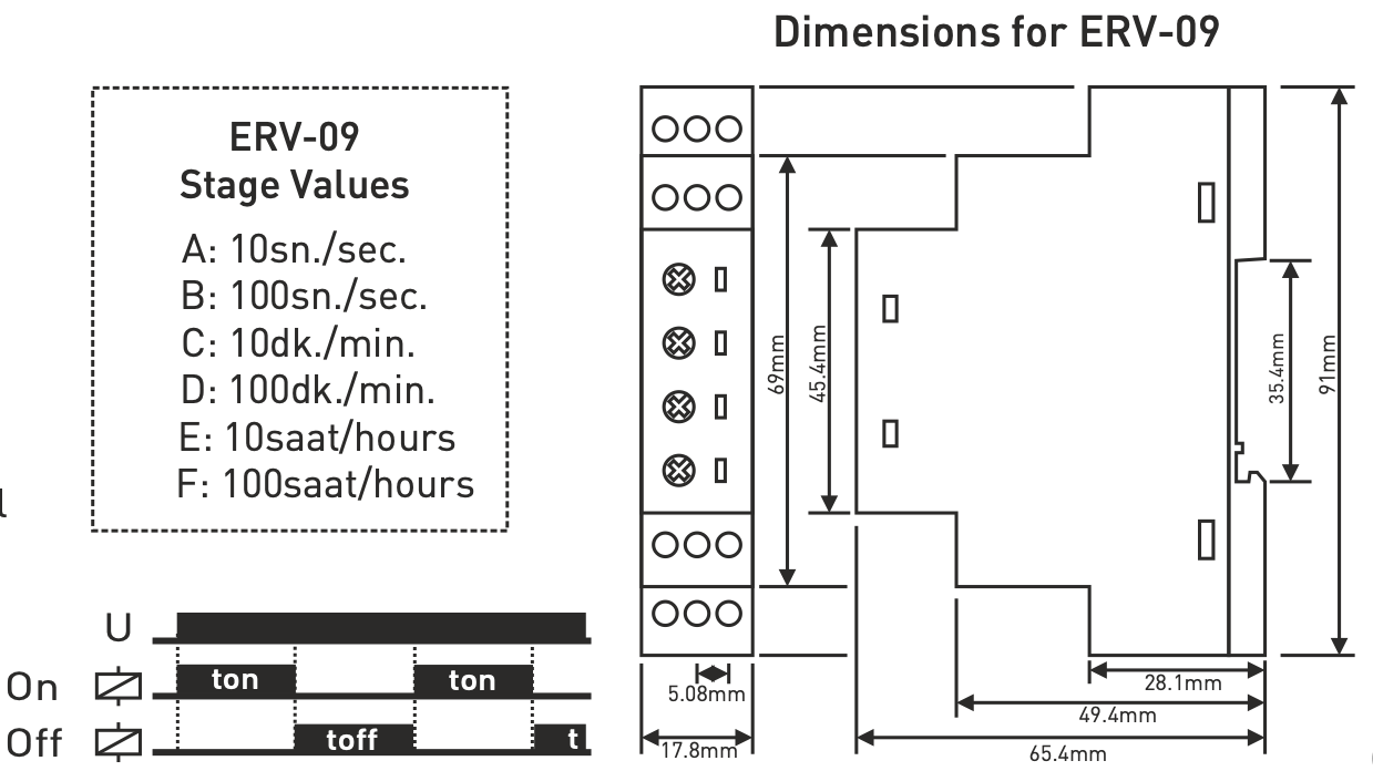 - Das Zeitrelais wird auf einer Standard 35mm DIN-Schiene montiert.