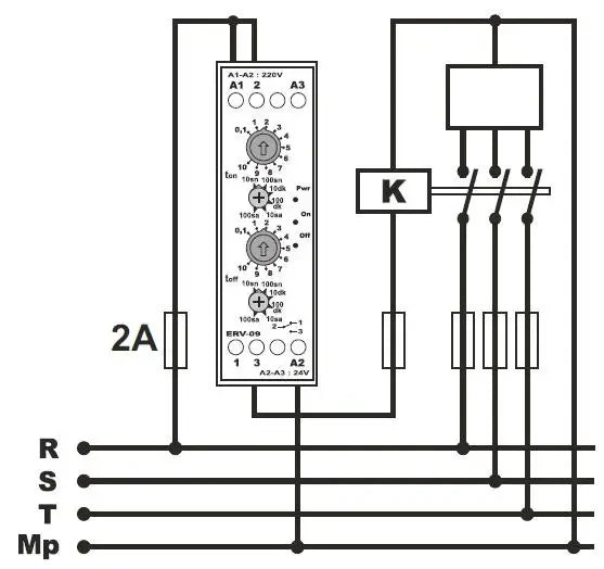 Wenn Sie das Relais so konfigurieren, dass seine Einschalt- und Pausenzeiten symmetrisch sind, können Sie es z. B. verwenden, um bestimmte elektrische Geräte bei Strom-/Leistungsbegrenzungen schrittweise einzuschalten (Heizungen, Wärmeerzeuger). Das Vorhandensein eines schaltenden Ausgangskontakts ermöglicht es, den Zyklus entweder gepulst oder mit einer Pause zu starten.