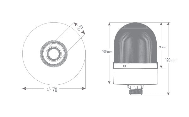 Blinkend ø70 NUT.CONN.SIGNAL BEACON MIT SUMMEN, 40-250V AC/DC, BLAU MIT 20CM EXT.TUBE