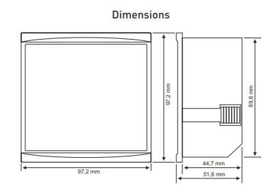 Abmessungen 97,2x97,2mm für 91x91mm Ausschnitt, Tiefe 45mm