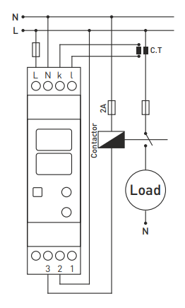 Anwendung und Funktionsweise Schließen Sie das Gerät gemäß dem beiliegenden Schaltplan an. Ein falscher Anschluss kann zur Beschädigung des Gerätes führen. Stellen Sie den Überstromwert entsprechend den Betriebsstromwerten der von Ihnen verwendeten Geräte ein. Nach dem Anschließen der Spannungsversorgung: