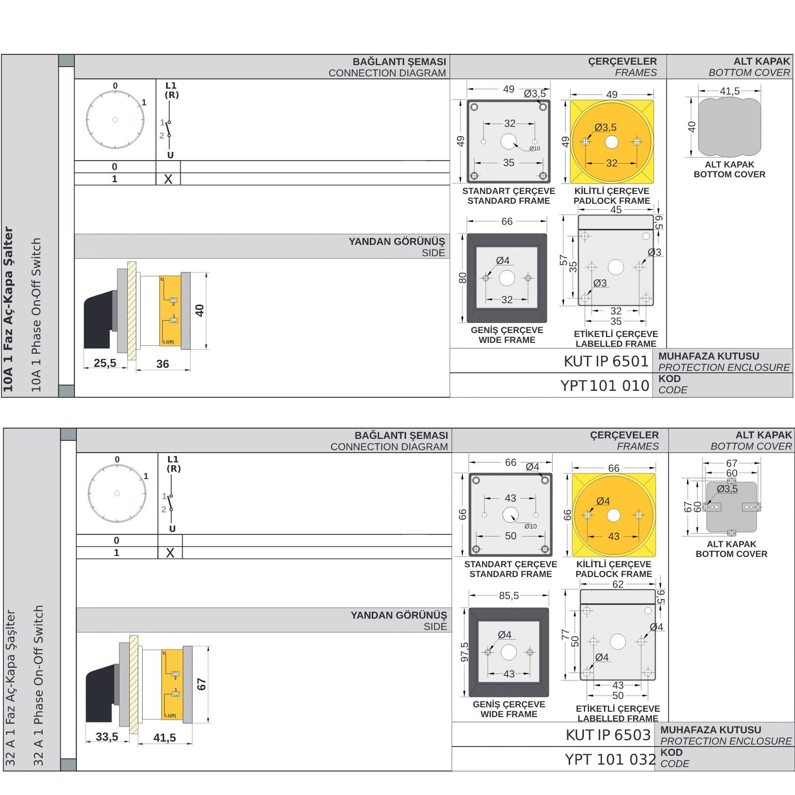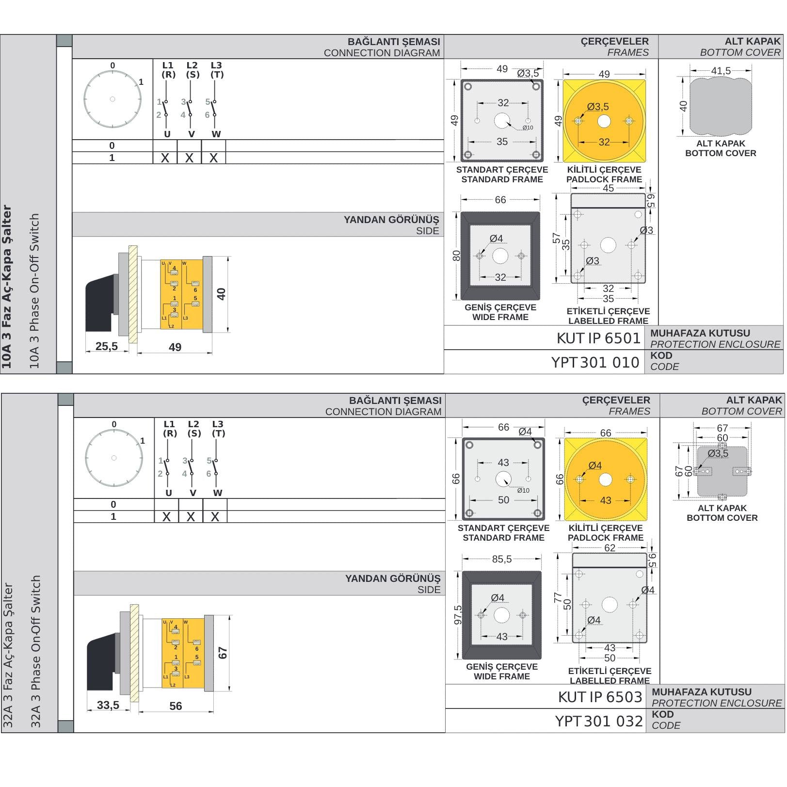 Nockenpaket ON-OFF (0-1) Schalter ohne Verriegelung, 1-2-3-4 Pole, YPT101/YPT201/YPT301/YPT401 Hersteller OPAŞ (Türkei)