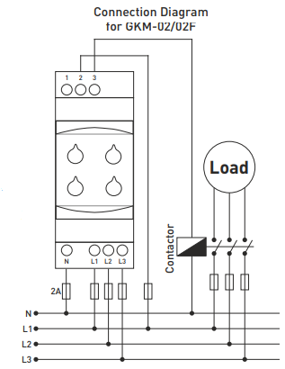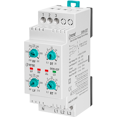 Dreiphasiges Überwachungs-/Schutzrelais zur Kontrolle von Überspannung, Unterspannung, Sequenz, Phasenausfall mit Zeitschaltuhr. GKM-02/02F (ERREGT)