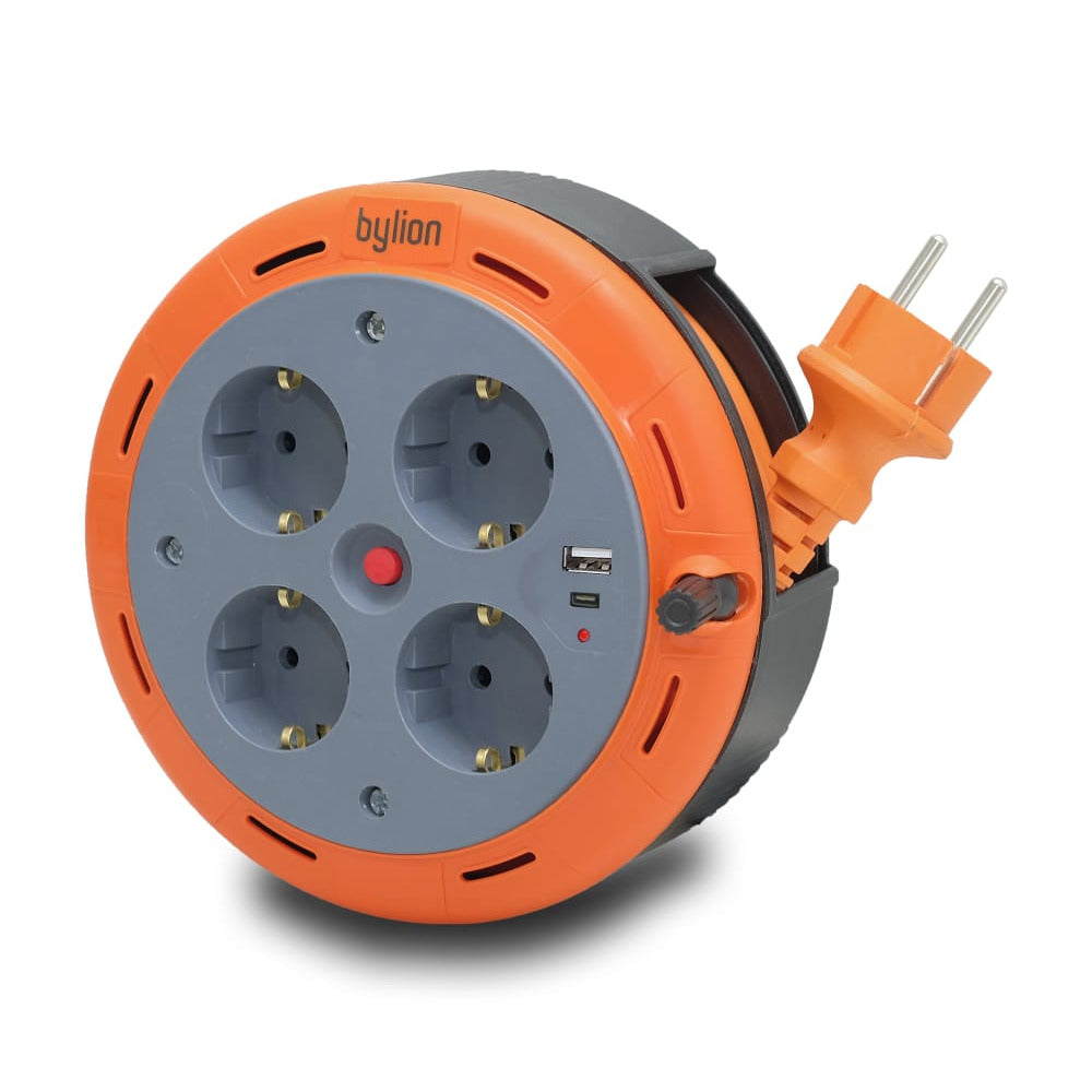 Dieses Modell ist mit vier Steckdosen und einem robusten H05VV-F-Kabel mit einem Querschnitt von 3G1,00mm² und einer Länge von 5 Metern ausgestattet, das eine ausreichende Reichweite für eine Vielzahl von Anwendungen gewährleistet. Die orange Farbe des Kabels erhöht die Sichtbarkeit und trägt zur Sicherheit bei der Benutzung bei. Mit dieser Kabeltrommel können Sie Geräte einfach und schnell ein- und ausschalten und Kabelsalat vermeiden. Dank der USB-Anschlüsse können Sie Ihr Smartphone oder andere elektronische Geräte auch ohne Ladegerät aufladen.