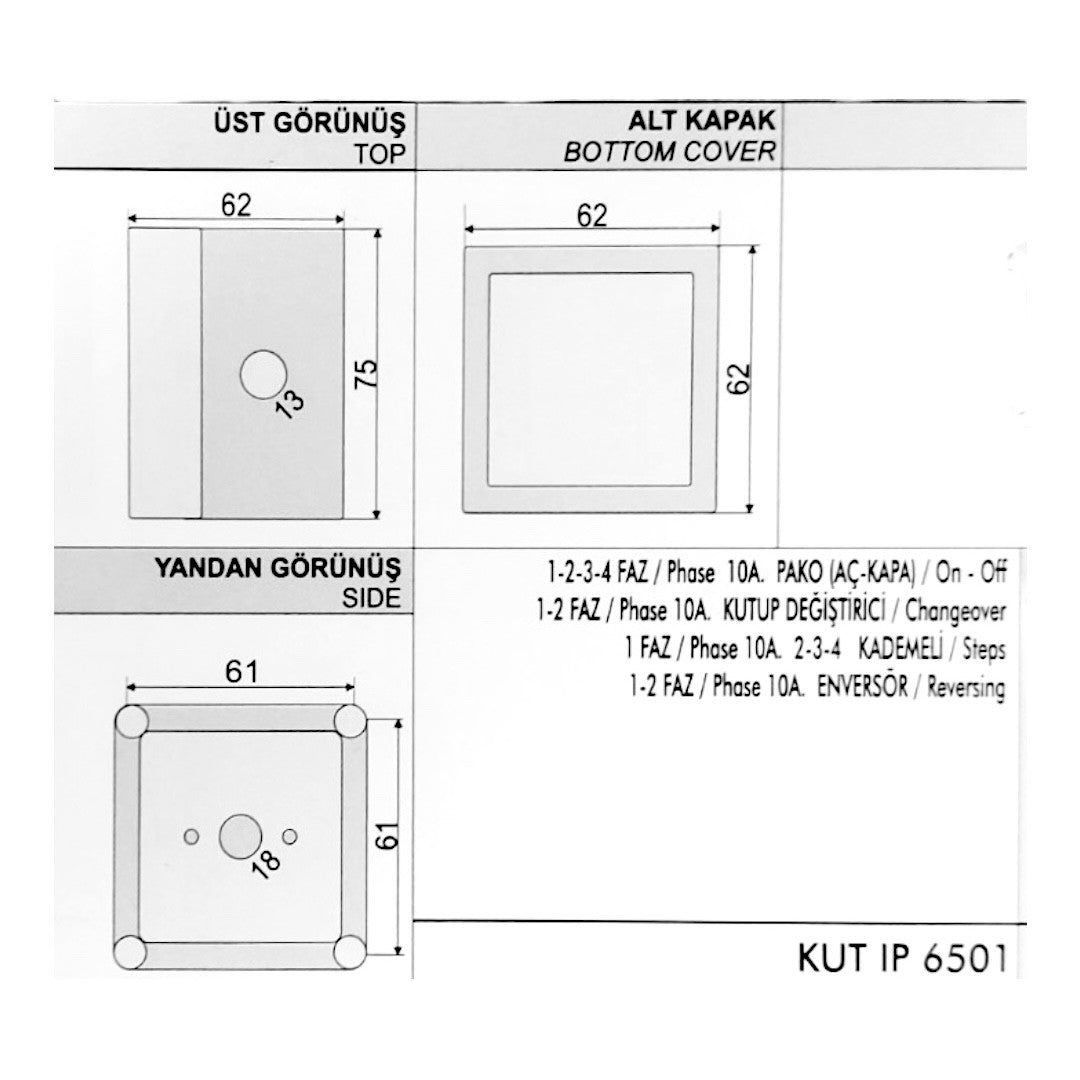 Kunststoffgehäuse IP65 für Nockenschalter, Hersteller OPAŞ (Türkei)