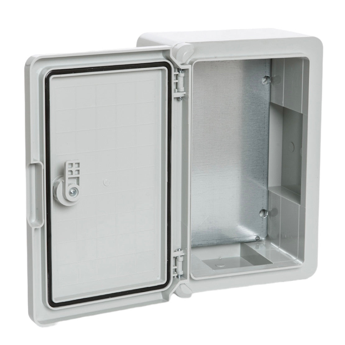 Kunststoff-Schaltschrank, graue Tür, inkl. Montageplatte, RAL7035, IP65