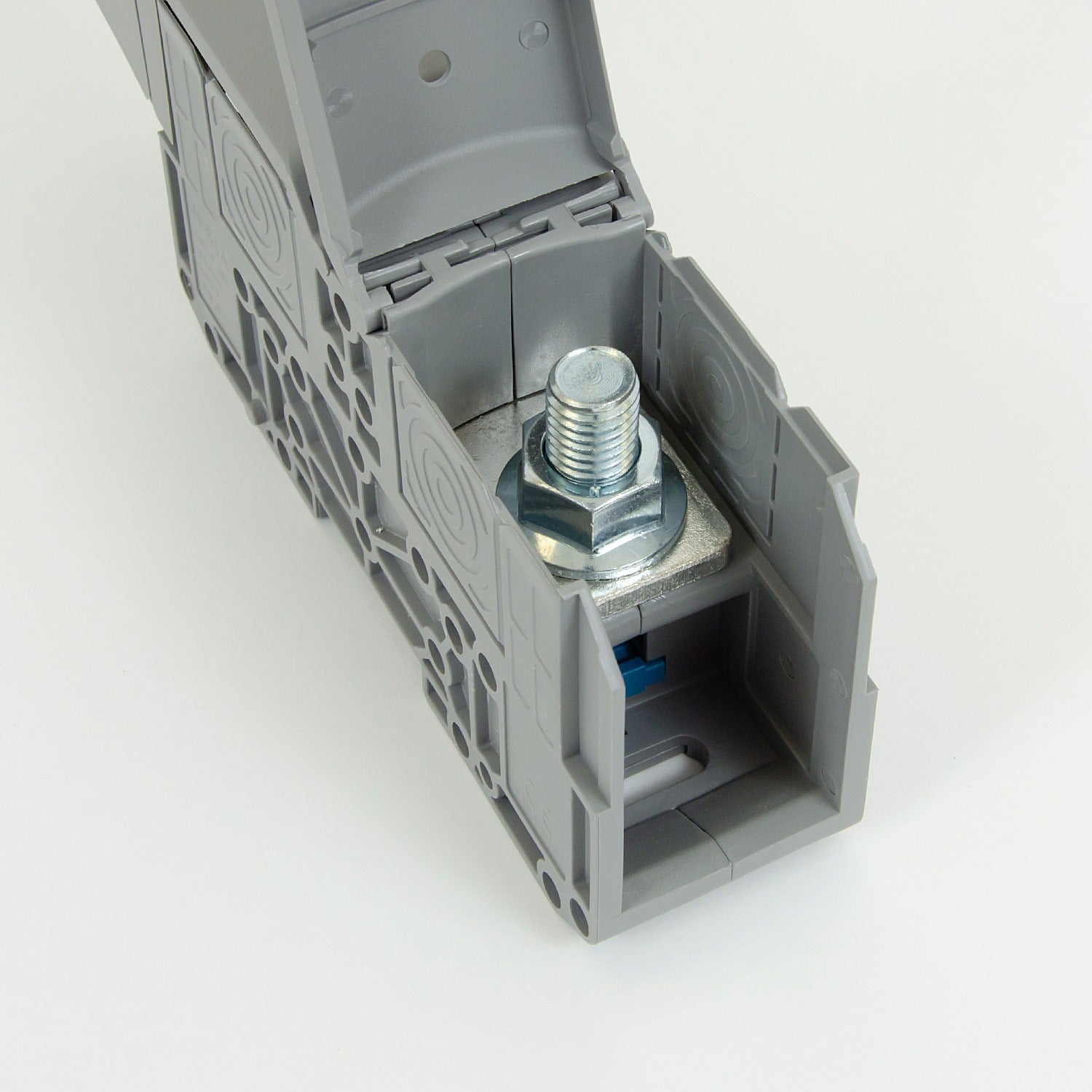 M12, 150mm2, Schraub-Sammelschienenverbinder / DIN-Schienenanschluss mit Schutzkappe, grau, ONKA, made in Turkey