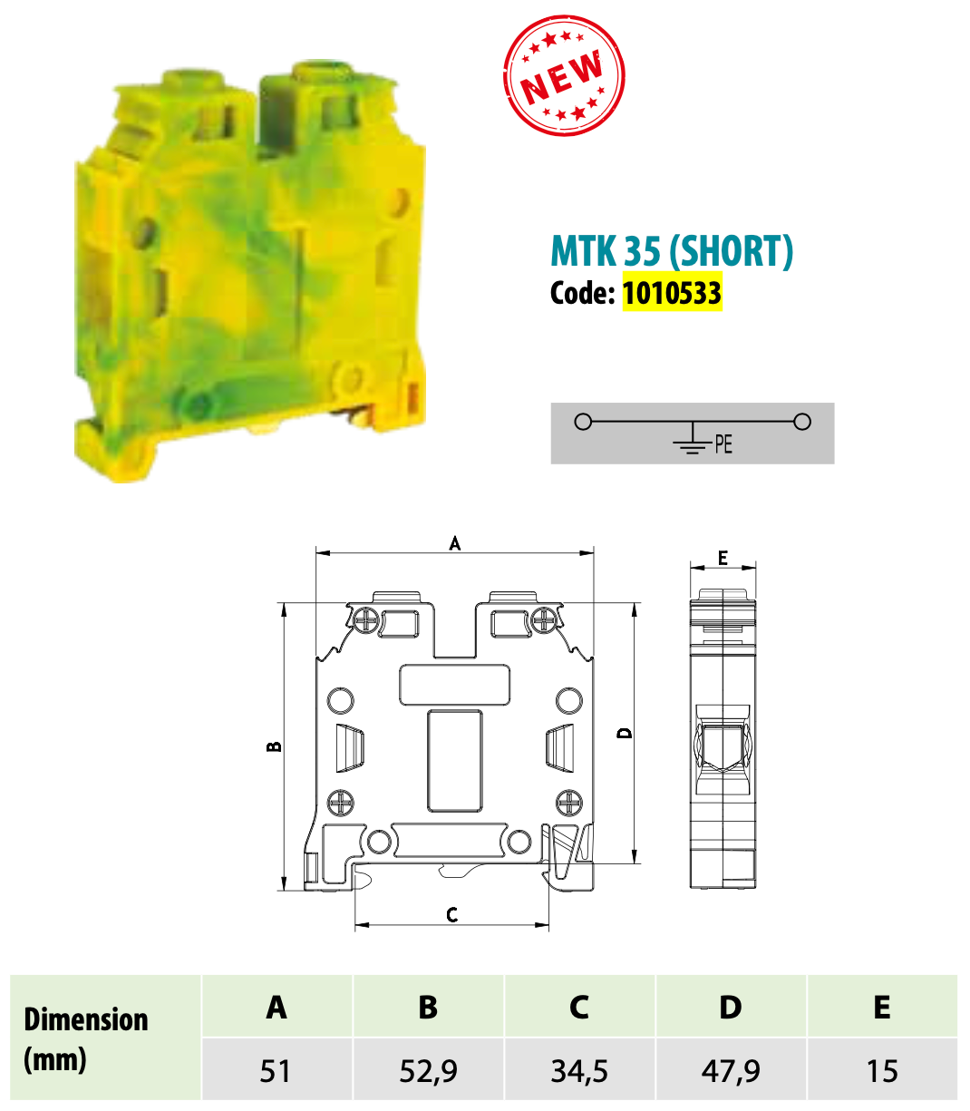 ONKA 35mm2 PE Schraubsteckverbinder Reihenklemme DIN-Schienen-Klemme 2-Leiter grau, 1010533