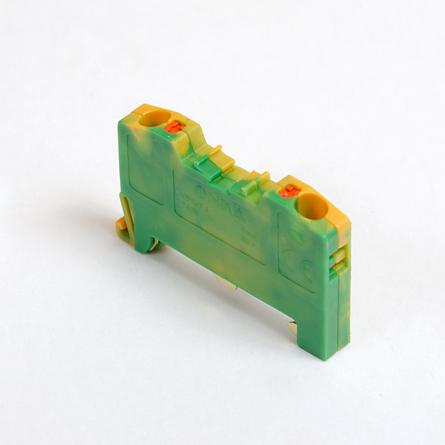 PE-Federsammelschienenverbinder / DIN-Schienenklemme 2-adrig grün-gelb, ONKA, made in Turkey