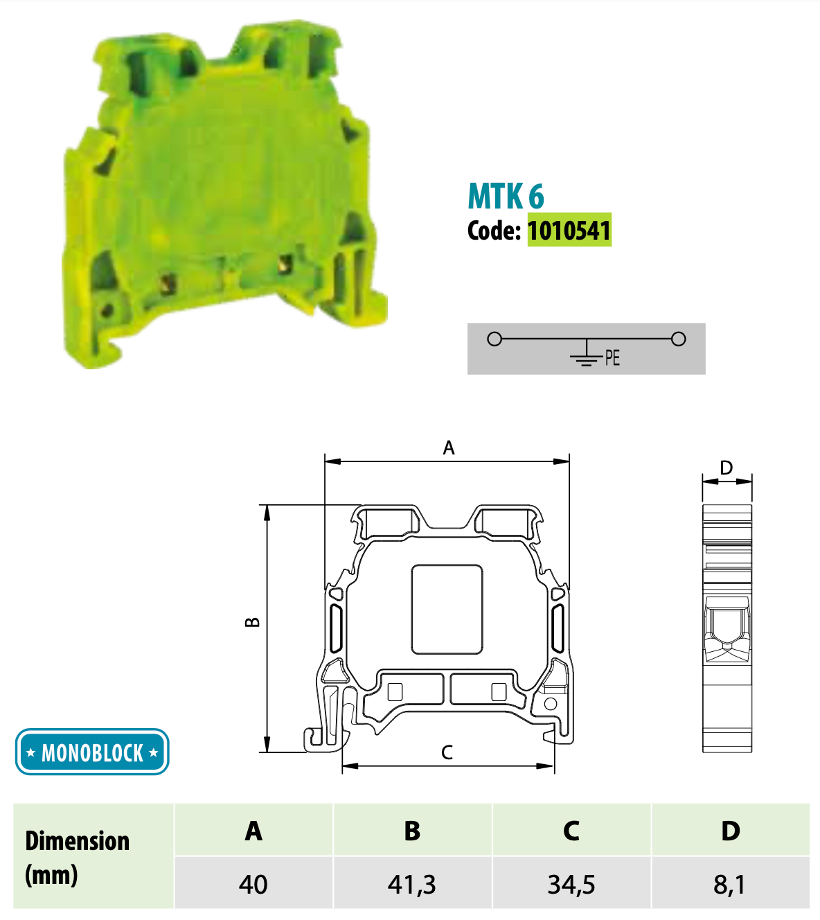 Querschnitt der angeschlossenen Einzelleitung bis zu: 6mm2