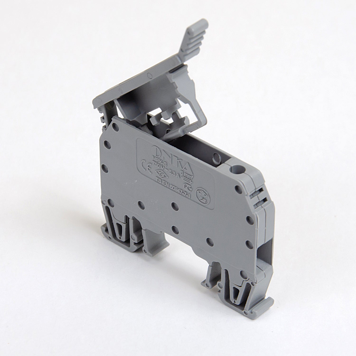 Dient zum Schutz von AC- oder DC-Stromkreisen mit niedrigem Strom. In der Klemme ist eine 5x20 mm große Sicherung mit einer Stromeinstellung bis zu 6,3 A installiert. Die Sicherung ist nicht im Lieferumfang enthalten und muss separat bestellt werden.