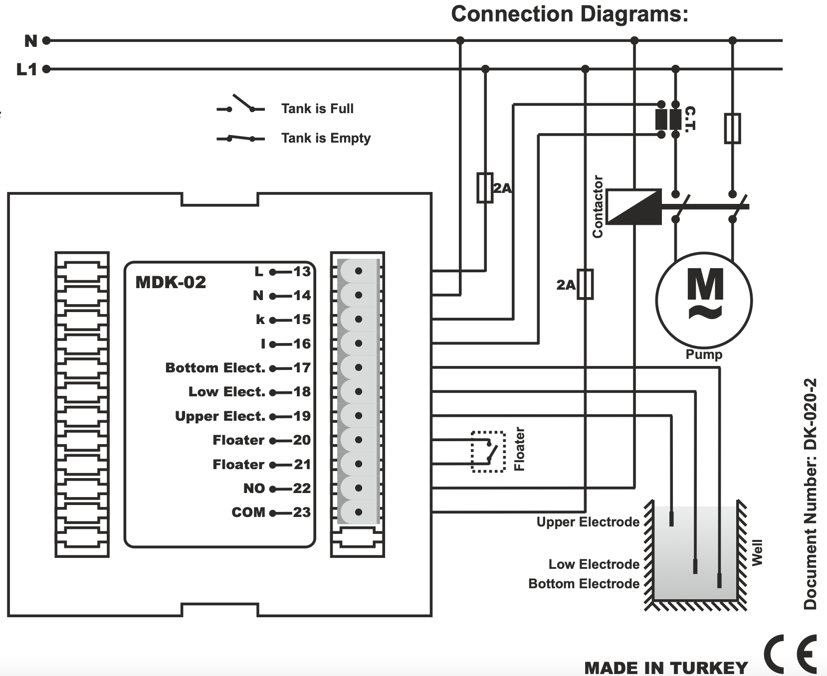 Einphasiger Unterwassermotorpumpenregler, 140 V-280 V AC, 60 A, Tense Art.Nr.: MDK-02 Elektroden (Füllstandssensoren) nicht enthalten.