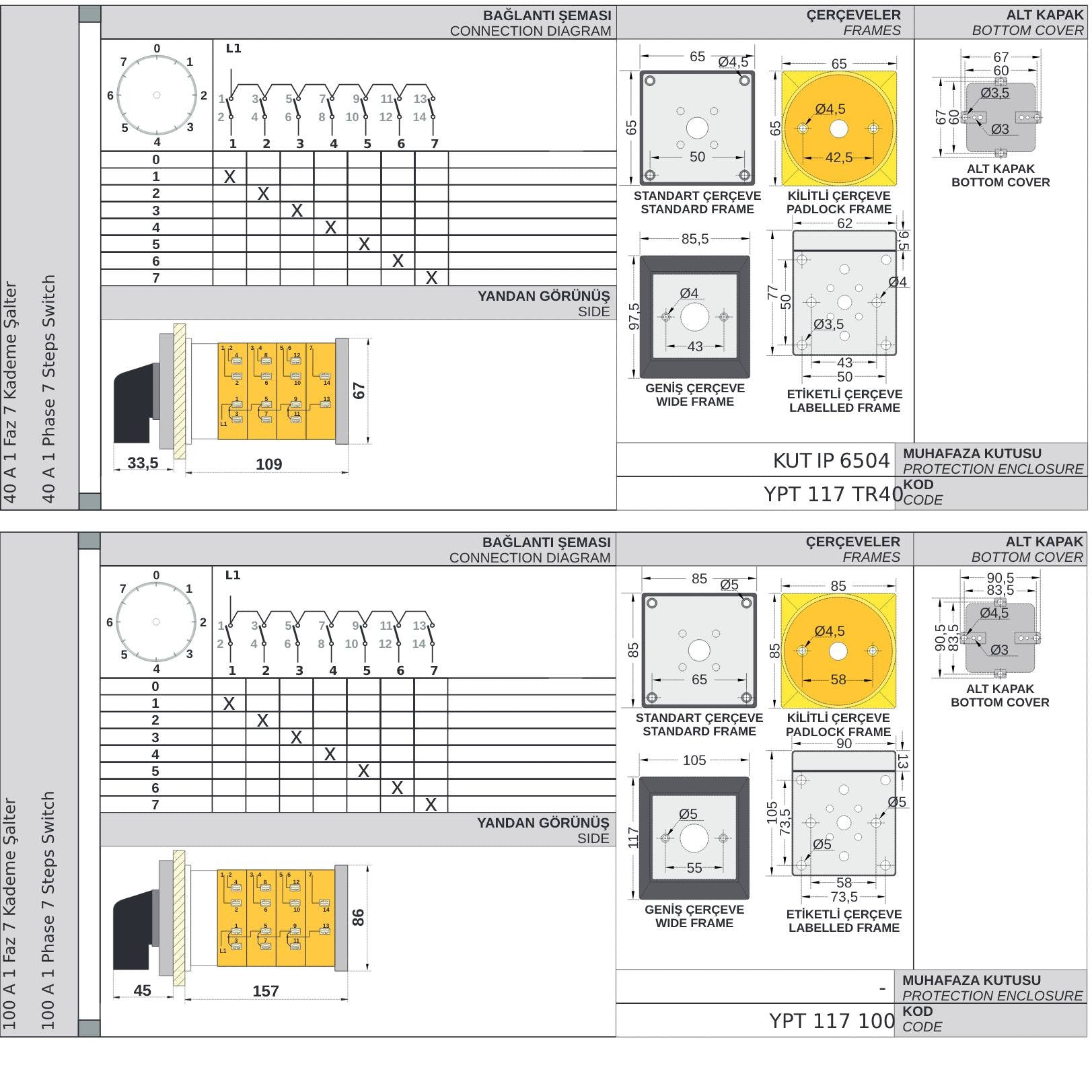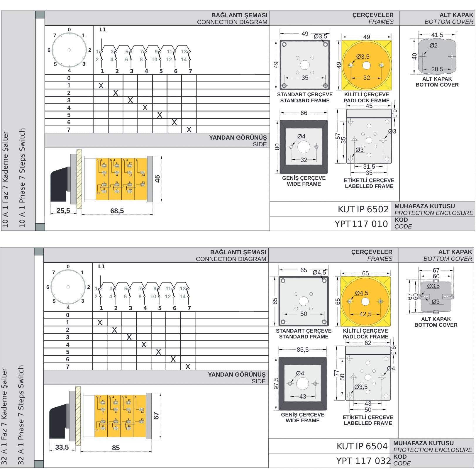 Stufenschalter 0-1-2-3-4-5-6-7, Drehschalter, 1-polig, 10-160A, YPT117 Hersteller OPAŞ (Türkei)